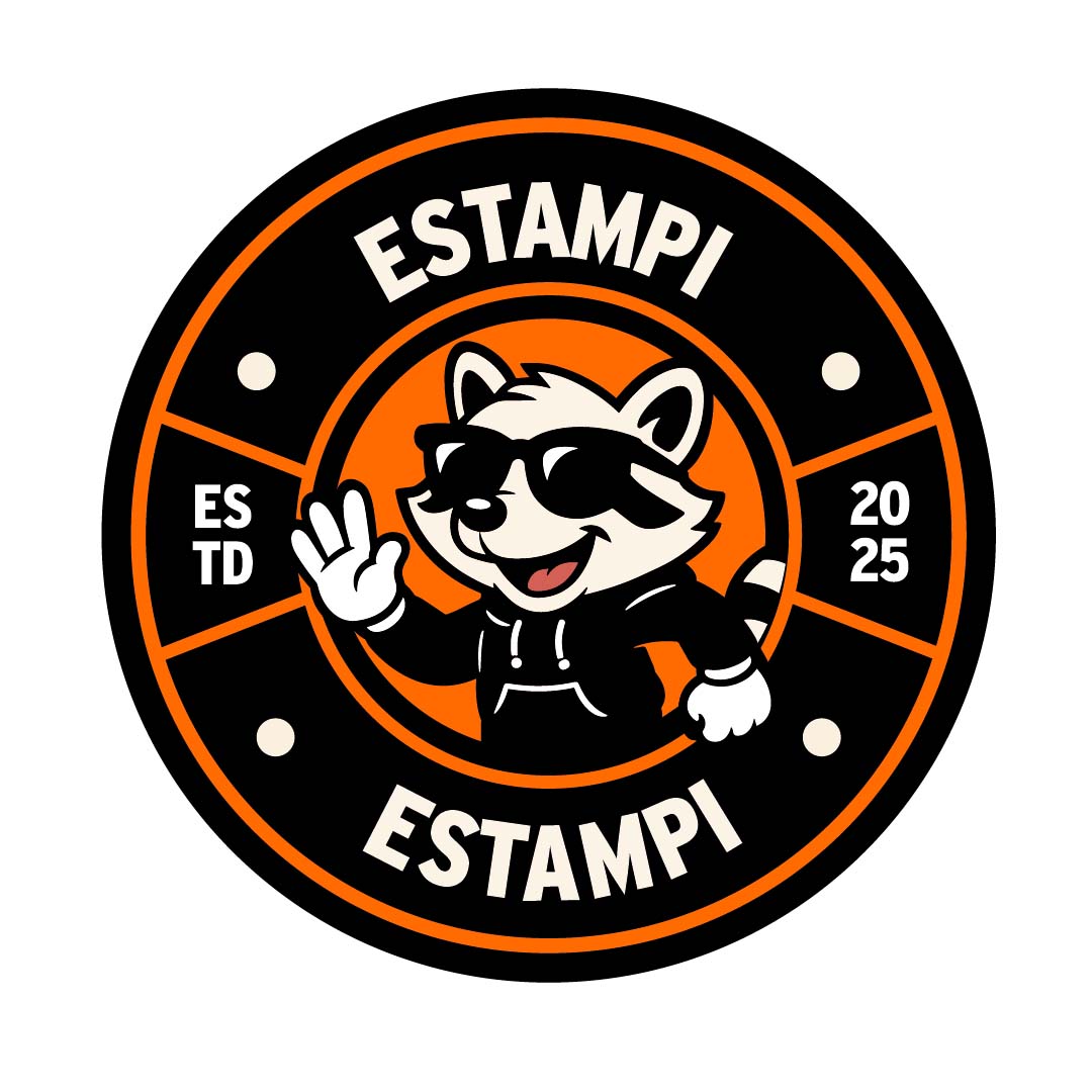 Ah, y no estamos solos en esto… Te presentamos a "Estampi" nuestra mascota que es un Mapache y es el compañero de aventuras creativas.